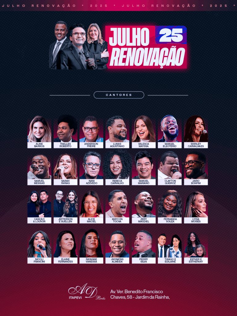 Ao longo desses 25 anos de história, o Julho – Mês de Renovação vem sendo conhecido como um dos maiores ajuntamentos espirituais do Brasil Em 2025, o evento celebra sua 25ª edição com uma programação simplesmente histórica.